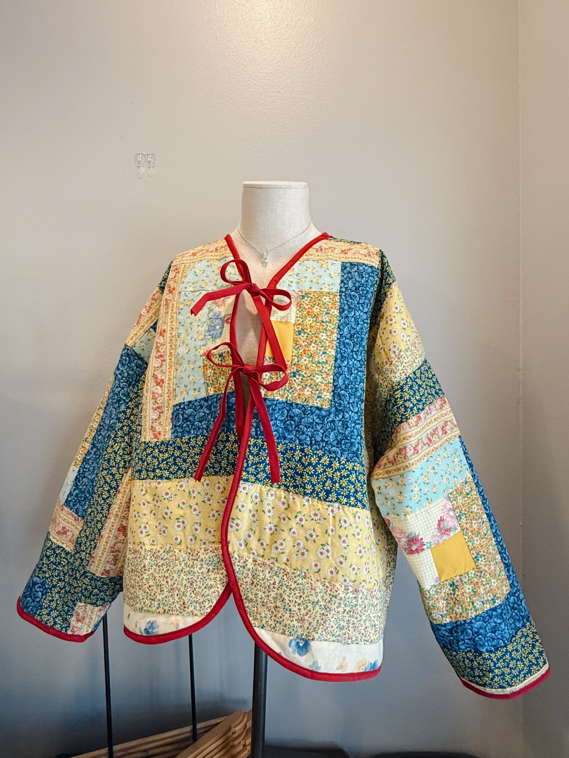 made from thrifted quilt! can fit an xl oversized or an xxxl fitted!